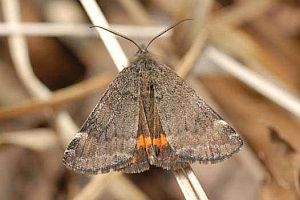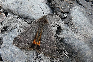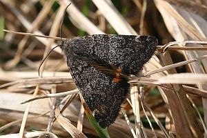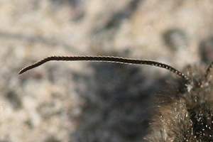 Der Falter auf Foto 5 ist aufgrund der kurz gekämmten Fühler eindeutig als ♂ dieser Art anzusprechen. Foto vom 12. Oktober 2003 - und damit einziger bisher bekannt gewordener Herbstnachweis dieser ansonsten streng auf den Frühling fixierten Art (bzw. ganzen Artengruppe). [Anmerkung Erwin Rennwald]