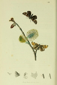 • Curtis, J. (1823-1840): British Entomology; Being Illustrations and Descriptions of the Genera of Insects Found in Great Britain and Ireland: Containing Coloured Figures from Nature of the Most Rare and Beautiful Species, and in Many Instances of the Plants upon which they are Found. Vol V. Lepidoptera, Part I. — [Not paginated]. London (E. Ellis & Co.).