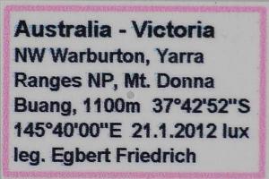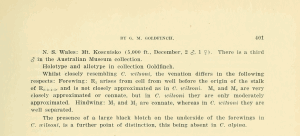 - Original description: Goldfinch, G. M. (1929): Revision of Australian Geometridae (Lepidoptera). Containing a Revision of the Archaic Types of the Family, with Notes and Descriptions of New Species. — The Proceedings of the Linnean Society of New South Wales 54 (4): 379-407, pl. XIV-XVI. Sydney (The Australian Medical Publishing Co., Ltd.).