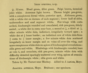 - Iodis [sic] speciosa Lucas, 1890 [original combination]
