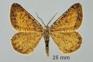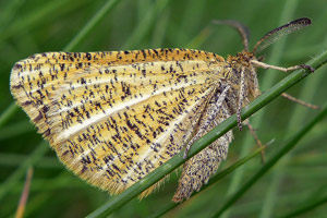 12-13: ♀, Deutschland, Rheinland-Pfalz, Kreis Cochem-Zell, Klotten, Naturschutzgebiet Dortebachtal, Aussichtspunkt "Kasteschkopp", ca. 210 m, Raupen am 13. Juni 2014 von Besenginster (Cytisus scoparius) geklopft, e.l. 10. Juli 2014 (cult., det. & fot.: Tina Schulz)Forum