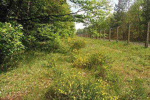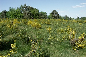 1: Eiablagehabitat mit Besenginster (Cytisus scoparius), kräftigerer Strauch etwas rechts vor der Bildmitte): Deutschland, Baden-Württemberg, Nördliche Oberrheinebene, Söllingen, Baden-Airpark, 124 m, 11. Mai 2006 (Foto: Erwin Rennwald)Forum
