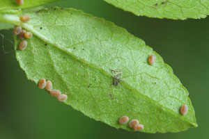 3-5: braune Form, Deutschland, Sachsen, Doberschütz, an Heidelbeere (Vaccinium myrtillus), leg. 4. Mai 2008, 21. Mai 2008 (Studiofotos: Heidrun Melzer), cult. & det. Heidrun Melzer