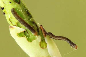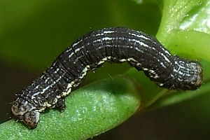 1-2: vorletztes Stadium (2 Individuen), Deutschland, Sachsen, Doberschütz, an Heidelbeere (Vaccinium myrtillus), 4. Mai 2008 (manipulierte Freilandfotos: Heidrun Melzer), leg., cult. & det. Heidrun Melzer