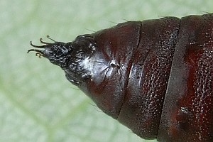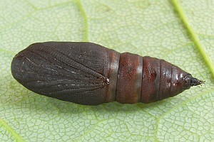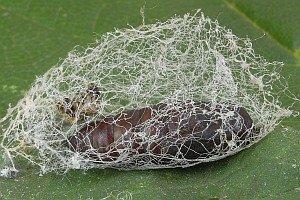 1: Griechenland, Samos, Vourliotes, 3 km S Vourliotes, 880 m, ♀ leg. & det. K. Bech, D. Fritsch & M. Top-Jensen 12. Juni 2012, cult. ex ovo Dieter Fritsch & Heidrun Melzer, verpuppt in lockerem Gespinst zwischen Blättern (Foto am 3. August 2012: Heidrun Melzer)