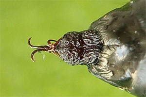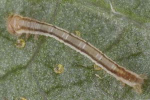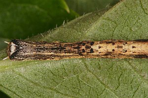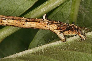 5: auf 21 mm geschrumpfte, überwinternde Raupe, dieselben Funddaten (Foto am 8. Januar 2006: James Connell), cult. & det. James Connell