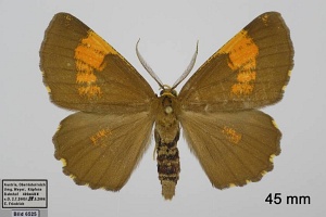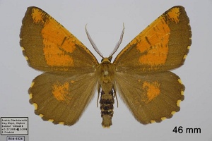13: ♀, Deutschland, Sachsen, Dübener Heide, Umgebung von Doberschütz, Raupenfund am 26. April 2008 an Besenginster, e.l. 31. Mai 2008 (leg., cult., det. & Foto: Heidrun Melzer)