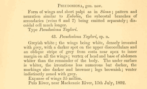 - Erstbeschreibung: Butler, A. G. & W. F. Kirby (1893): List of Insects collected by Miss Elizabeth Taylor in Western North America in the Summer of 1892. — The Annals and Magazine of Natural History Including Zoology, Botany, and Geology. Sixth Series 12: 11-21. London (Taylor and Francis).