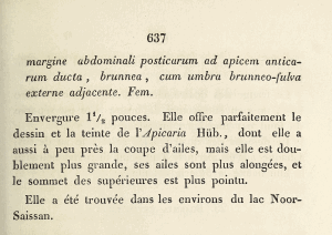 - Erstbeschreibung: Eversmann (1851): Description de quelques nouvelles espèces de Lépidoptères de la Russie. — Bulletin de la Société impériale des naturalistes de Moscou 24 (2): 610-644. Moscou (W. Gautier).
