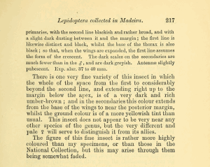 • Erstbeschreibung: Bethune-Baker, G. T. (1891): Notes on the Lepidoptera collected in Madeira by the late T. Vernon Wollaston. — The Transactions of the Entomological Society of London for the Year 1891: 197-221 + pl. XII.