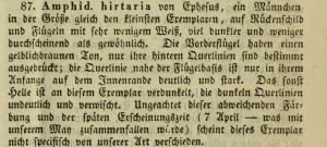 - Bezug der Indikation in der Erstbeschreibung: Zeller, P. C. (1847): Verzeichniß der von Professor Dr. Loew in der Türkey und Asien gesammelten Lepidoptera. — Isis von Oken 1847 (1): 3-39. Leipzig (Brockhaus).