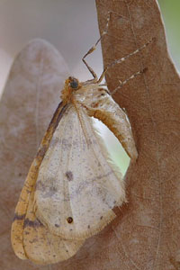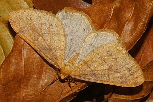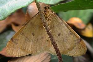 Männchen: Die Spätherbst-Art Agriopis aurantiaria kann den zeichnungsarmen Formen von Erannis defoliaria recht ähnlich sein. Hilfreich ist hier ein Blick auf die Hinterflügel-Oberseite: Bei E. defoliaria ohne Mittellinie (aber mit Mittelpunkt), bei A. aurantiaria mit v.a. am Innenrand deutlicher Mittellinie. Manche Falter zeigen diesen Bereich freiwillig, andere erst nach leichter Störung. Ist die Zeichnung der Vorderflügel erkennbar, reicht sie zur Unterscheidung aus: E. defoliaria hat viel unruhiger und zackiger verlaufende Linien (an den kontrastreichen Exemplaren von E. defoliaria leicht zu studieren) als A. aurantiaria. Bei A. aurantiaria sind diese fast immer vorhanden, bei E. defoliaria öfter völlig verloschen. Bezüglich Zeichnungsanlage mit A. aurantiaria fast identisch ist Agriopis marginaria. Wegen der unterschiedlichen Flugzeit (Ende Januar - März) ist die Verwechslungsgefahr jedoch geringer. (Autor: Peter Buchner)