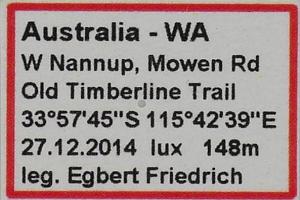 2: Australien, ACT, Canberra, Universitätscampus, 580 m, 17. Dezember 2014, am Licht (det. & fot.: Wolfgang Hackbusch), conf. (cf.) Egbert Friedrich und Dominik HoferForum