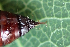 1-2: Tschechien, genauere Angaben unbekannt, Raupe an Espenschösslingen (Populus tremula), 1998 (Fotos: Otmar Czadek), cult. e.o. & det. Otmar Czadek (Bild 2 leicht manipuliert)Forum
