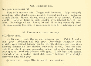 - Original description: Turner, A. J. (1947): New Australian Species of Boarmiadae (Lepidoptera). — Proceedings of the Royal Society of Queensland 58: 71-112. Brisbane (A. H. Tucker).
