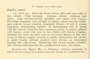 - Original description: Turner, A. J. (1947): New Australian Species of Boarmiadae (Lepidoptera). — Proceedings of the Royal Society of Queensland 58: 71-112. Brisbane (A. H. Tucker).