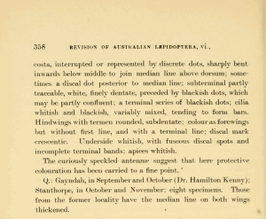 - Original description: Turner, A. J. (1917): Revision of Australian Lepidoptera, vi. — The Proceedings of the Linnean Society of New South Wales 42 (2): 304-336, 344-390. Sydney (W. A. Pepperday & Co.).