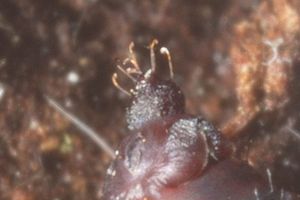 Die ♂ Genitalien sind durch das krallenartige Ende des Aedeagus (1) unverwechselbar.