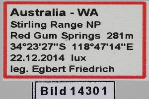 5: ♀, Australia, Western Australia, Leeuwin-Naturaliste NP, Boranup Drive x Anchor Road, 100 m, e.o. breeding (F2) ♀: 5. January 2015 lux; (det. & phot.: Egbert Friedrich)