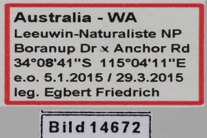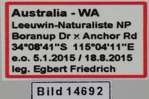 1: ♂, Australia, Western Australia, Leeuwin-Naturaliste NP, Boranup Drive x Anchor Road, 100 m, e.o. breeding, ♀: 5. January 2015 lux; (det. & phot.: Egbert Friedrich)