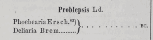 Xue et al. (2018) vermuten, dass Problepsis discophora Fixsen, 1887 Synonym zur hier besprochenen Art sein könnte: "In our study, we found the species and P. discophora only show some differences on the shape of ocellus. Besides, we also found one male specimen from Beijing (figs 24, 49, 70) shows a transition between the two species: the ocellus of the forewing is fused to the posterior small marking, smooth on the inner margin, and forms a small protrusion on the outer margin, not reaching the postmedial line; the ocellus of the hind wing is similar to that of P. phoebearia. Therefore we suspect P. phoebearia and P. discophora maybe the same species."