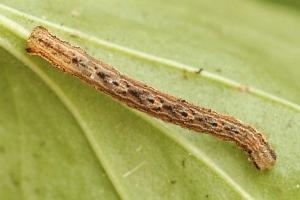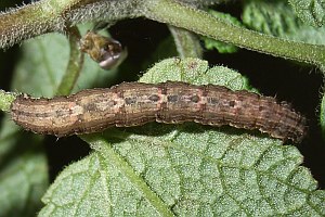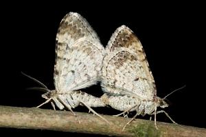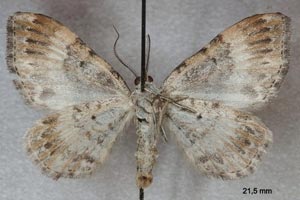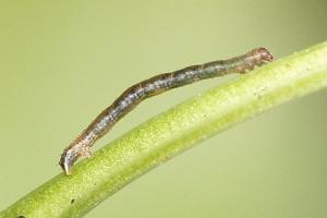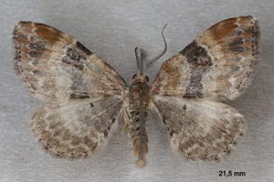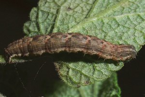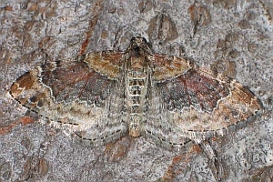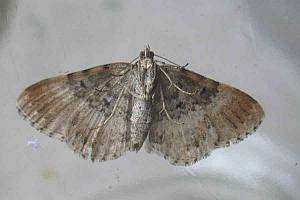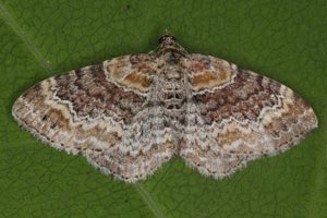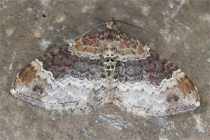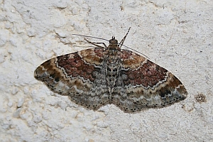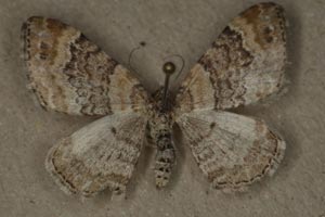 Die Hinterflügel von Xanthorhoe ferrugata sind monoton graubraun.