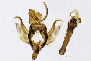 Im Kasten ist der Hinterflügel oberseits meist am Rand hell und zur Flügelwurzel hin verdunkelt, unterseits ist das ähnlich.