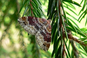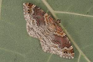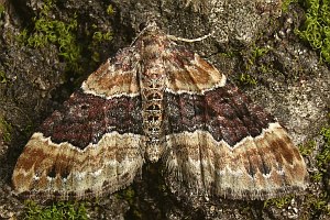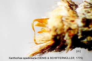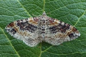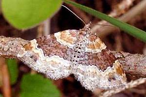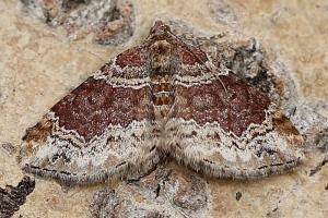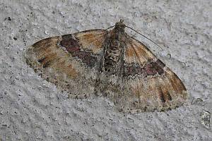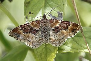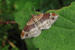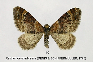 Xanthorhoe ferrugata-Formen mit rotem Mittelfeld lassen sich - wenn man die Hinterflügel nicht sieht NICHT von Xanthorhoe spadicearia unterscheiden!
