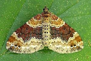 Xanthorhoe spadicearia hat kontrastreiche Hinterflügel, auf denen man die Querlinien i. d. R. deutlich erkennen kann.