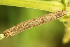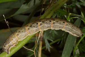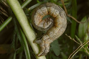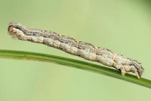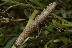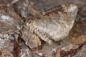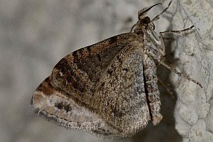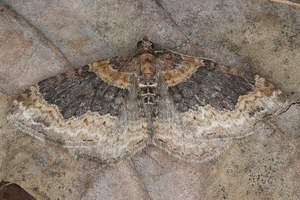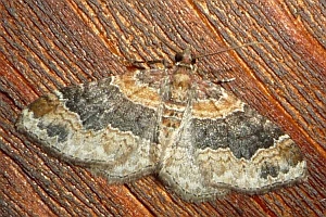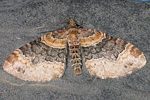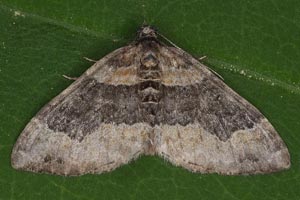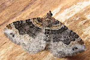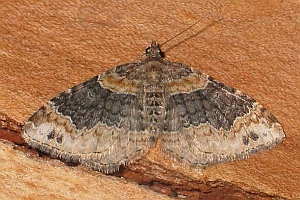 Die Hinterflügel von Xanthorhoe ferrugata sind monoton graubraun.