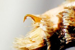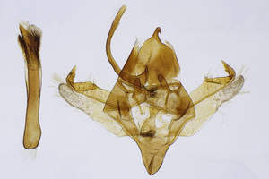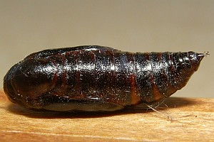 Im Kasten ist der Hinterflügel oberseits meist am Rand hell und zur Flügelwurzel hin verdunkelt, unterseits ist das ähnlich.