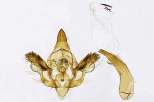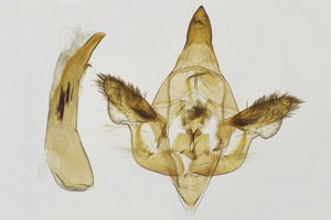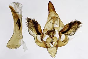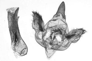1: ♂, Österreich, Niederösterreich, ca. 60 km südlich Wien, enges Tal mit Mischwald (v.a. Buchen, Fichten), feuchte Kalkfelsen, 600 m, am Licht, 25. Juli 2004 (präp. & Foto: Peter Buchner), det. Egbert FriedrichForum