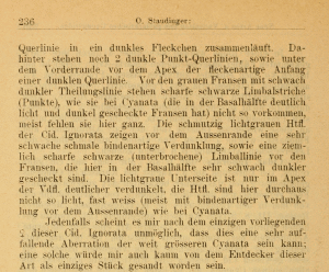 - Erstbeschreibung: Staudinger, O. (1892): Neue Arten und Varietäten von paläarktischen Geometriden aus meiner Sammlung. — Deutsche entomologische Zeitschrift Iris 5 (1): 141-260, pl. II.