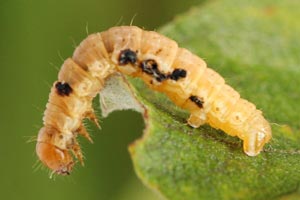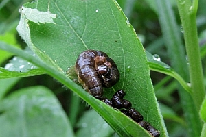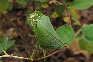1: Deutschland, Bayern, Bayerischer Wald, Lixenried, Trockenhang, in Salweidenblatt eingesponnen, 30. Juli 2006 (Foto: Ingrid Altmann), det. Ingrid Altmann, conf. Thomas FähnrichForum