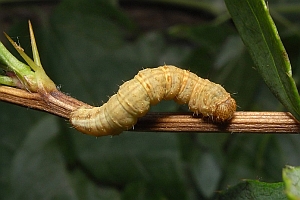 Die Raupe lebt an Berberitzen. Neben der in Mitteleuropa einheimischen Berberis vulgaris wird sie gelegentlich auch in Ortschaften an der aus Japan stammenden, gepflanzten Berberis thunbergii bzw. deren am häufigsten gepflanzten var. atropurpurea gefunden. Die Raupe lässt sich auch mit der zur gleichen Familie gehörenden Mahonie (Mahonia aquifolium) füttern - draußen scheint diese Pflanze aber nicht belegt zu werden.