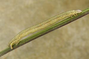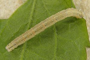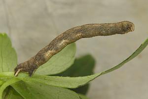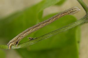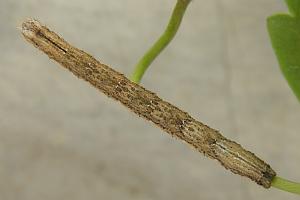 11-16: Spanien, Mallorca, Puigpunyent, Ortslage, 246 m, Raupe am 30. April 2019 von Clematis vitalba geklopft (cult., det. & fot.: Egbert Friedrich)