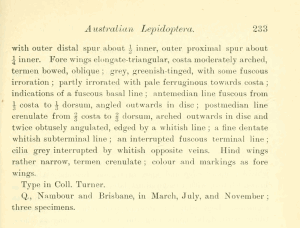 - Original description: Turner, A. J. (1904): Revision of Australian Lepidoptera. Family Geometridae. — Proceedings of the Royal Society of Victoria. New series 16 (2): 218-284. Melbourne (Ford & Son).