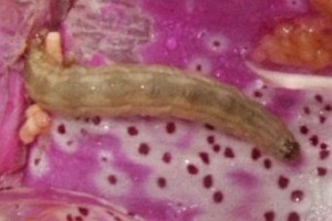 1: Runde Löcher im Blütenstand verraten die Anwesenheit der Raupen, die auf diesem Weg von einer zur anderen Blüte wechseln. [Forum]