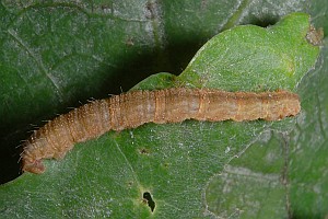 Diagnosehinweis von H.-J. Weigt in "Die Blütenspanner Mitteleuropas" (1993), sinngemäß: Die Unterseite der erwachsenen Raupe von E. abbreviata ist dunkelbraun, während sie bei E. dodoneata deutlich heller ist. (Bezieht sich auf stark gezeichnete Raupen.)
