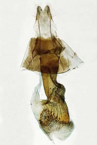 Obwohl die ♀ Genitalien auf den ersten Blick deutlich anders aussehen als jene von E. dodoneata, ist der Grundbauplan sehr ähnlich und die Unterschiede sind v.a. quantitativ. Die wichtigsten Bereiche im Detail: