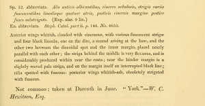 - Erstbeschreibung: Stephens, J. F. (1829-1831): Illustrations of British Entomology; or, a Synopsis of Indigenous Insects: Containing their Generic and Specific Distinctions; with an Account of their Metamorphoses, Times of Appearance, Localities, Food, and Economy, as Far as Practicable. Haustellata 3: 1-338, pl. 25-32. London (Baldwin and Cradock).