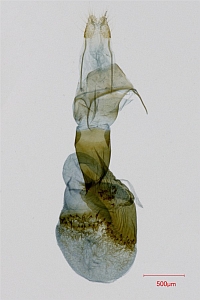1: ♀, Zypern, Umg. Pafos, südöstlich Kidasi, 400 m, 30. März 2013, Lichtfang (leg. Egbert Friedrich, Präparat & Foto: Hartmuth Strutzberg)Forum