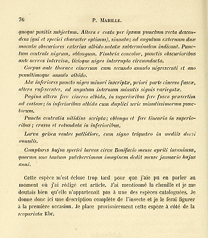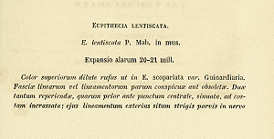 • Erstbeschreibung: Mabille, P. (1869): Notices sur les Lépidoptères de la Corse, avec la Liste des Acidalides de ce pays la 2e partie de l'énumération monographique des Eupithécies de la Corse, et la description de quatre Eupithecia nouvelles pour la faune parisienne. (3e Notice). — Annales de la Société entomologique de France. Quatrième série 9 (1): 53-80, pl. 2.