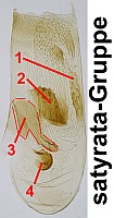 - ein sehr breiter plattenförmiger Cornutus (3)