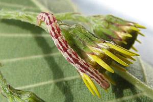 7-9: Deutschland, Niedersachsen, Umgebung Rodenberg, Streuobstwiese in Gewässernähe, 70 m, Raupe an Rainfarn (Tanacetum vulgare) am 18. Juli 2013, 4. August 2013 (det. & fot.: Tina Schulz)Forum