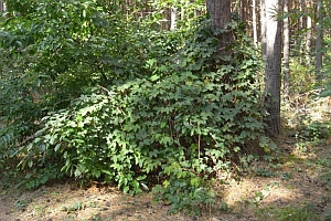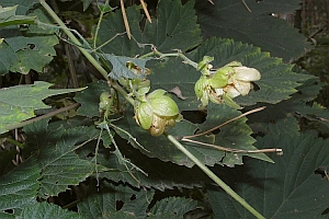 1: Deutschland, Sachsen, Dübener Heide, Umgebung von Doberschütz, Hopfen (Humulus lupulus) in Waldrandnähe, 18. September 2008 (Foto: Heidrun Melzer)