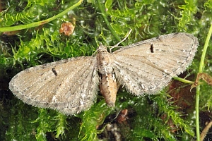 Gegenüberstellung lebender Falter von Eupithecia assimilata und Eupithecia absinthiata [hier]