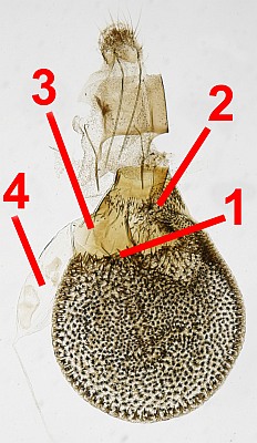 1: Genitalpräparat eines nicht abgebildeten ♂, Österreich, Niederösterreich, Hornstein, 29. August 2005 (leg., det., Präparation & Mikro-Foto: Peter Buchner)