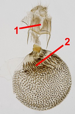 1: Genitalpräparat eines nicht abgebildeten ♀, Österreich, Burgenland, Raiding, 30. Juni 2001, leg. Helmut Höttinger (det., Präparation & Mikro-Foto: Peter Buchner)
