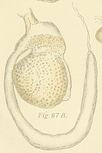- drei hornförmige Cornuti (2), diese am Grund verbunden (die beiden am Bild rechts liegenden überlagert!)